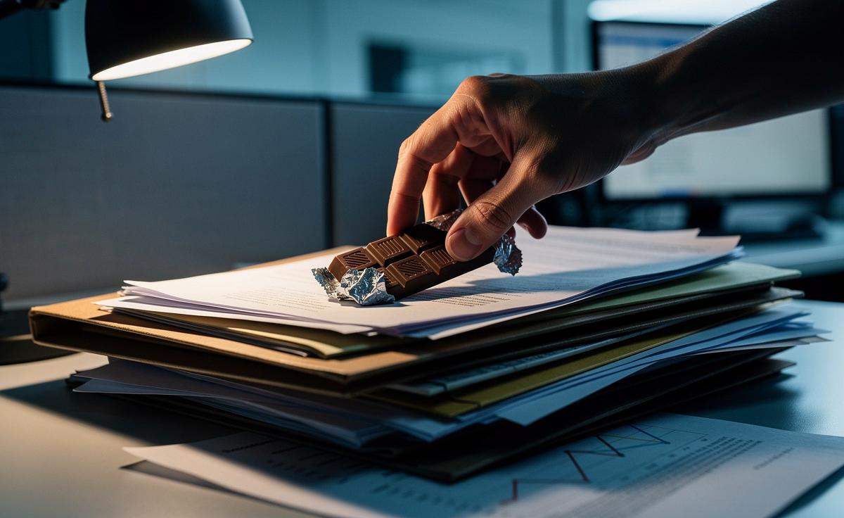 Entdecken Sie die versteckte Welt der Bürosüßigkeiten: Warum Kollegen Schokolade & Co. heimlich in Papierstapeln horten. Psychologie, soziale Codes und die Wahrheit über süße Büro-Geheimnisse.