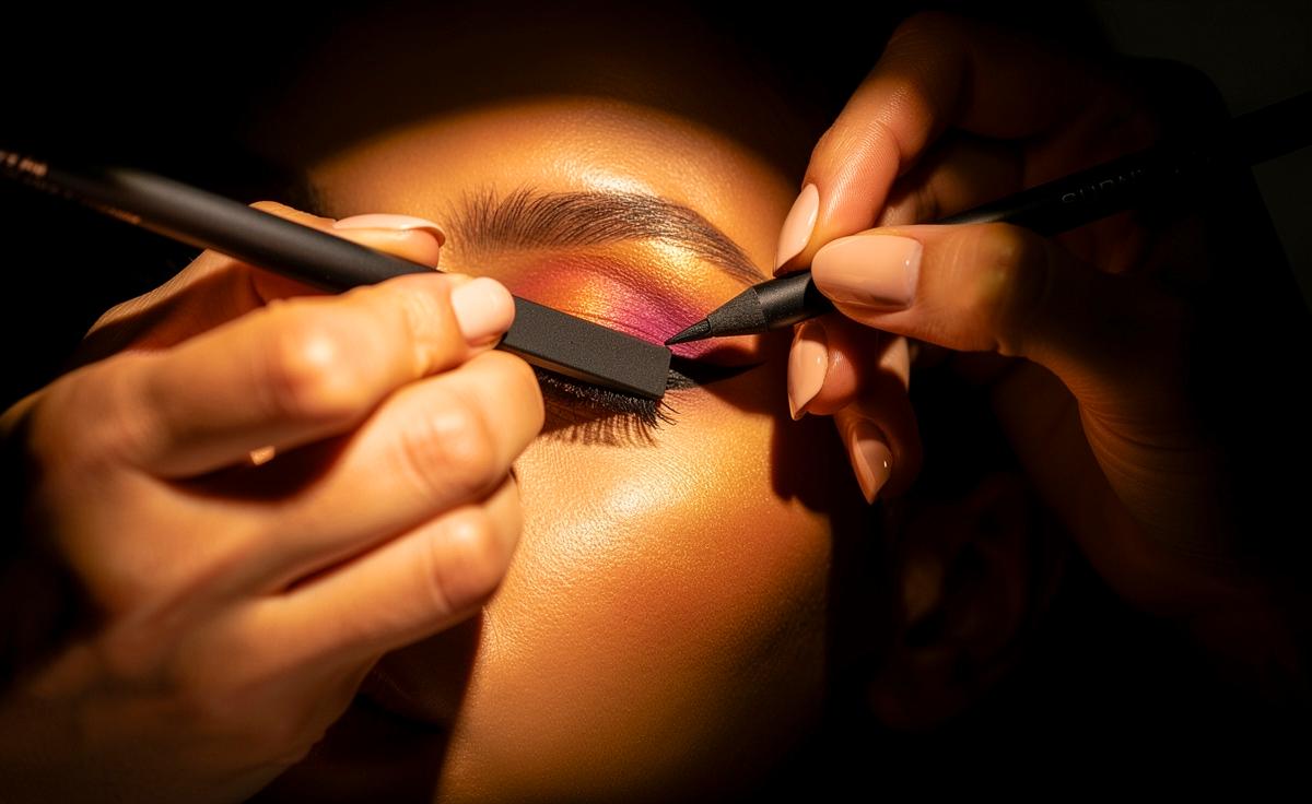 - 🛠️ Innovative Technik: Make-up-Artists verwenden die flache Kante des Eyeliner-Stifts selbst als präzise Führungsschiene, anstatt ein separates Lineal.
