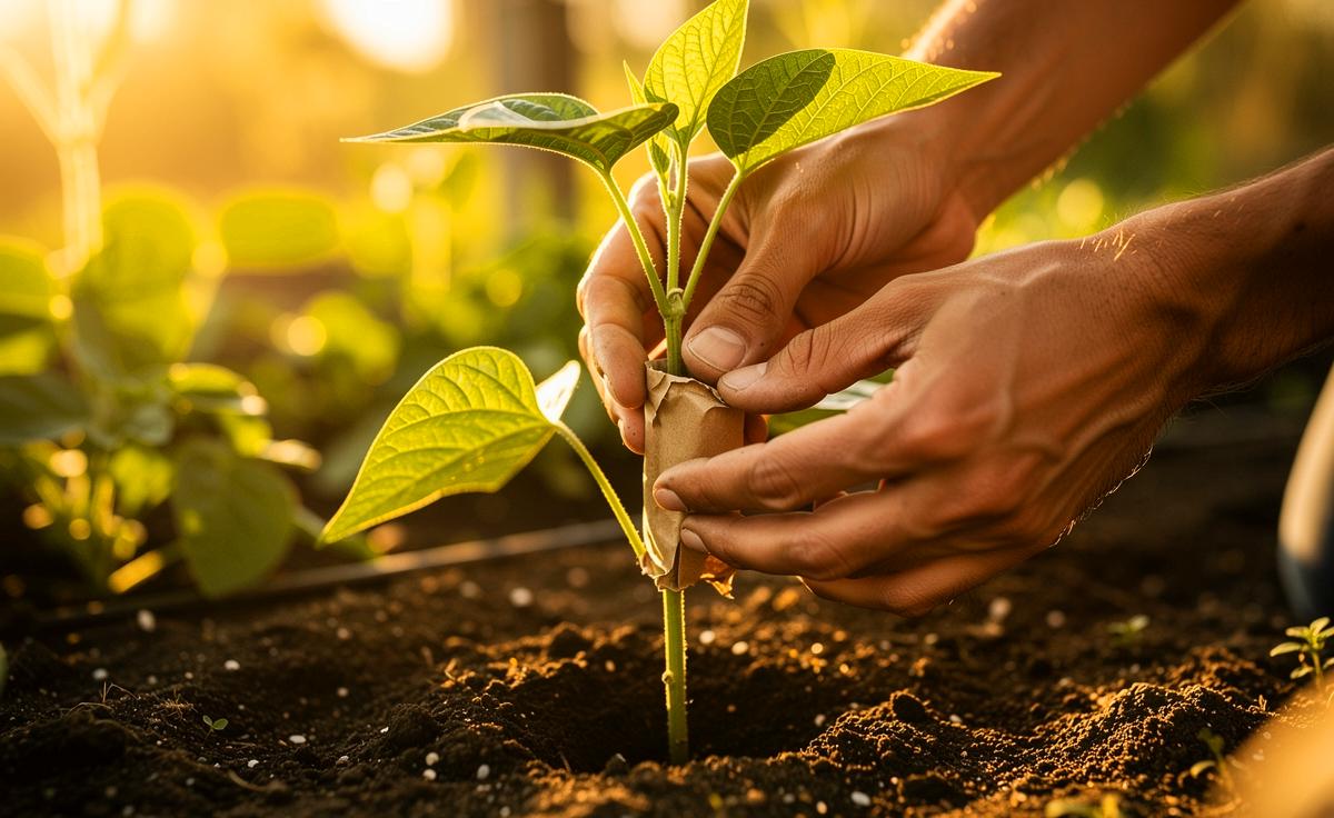 - 📄 Praktische und nachhaltige Anwendung: Es werden kostengünstige Materialien wie Zeitungspapier verwendet, die temporär als Kragen oder Abdeckung dienen und später kompostiert werden können.