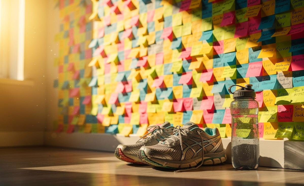 - 📝 Analog gegen digital: Post-its bieten eine haptische, sichtbare Alternative zum überwältigenden Datenstrom von Fitness-Apps und schaffen ein konkretes Erfolgserlebnis.