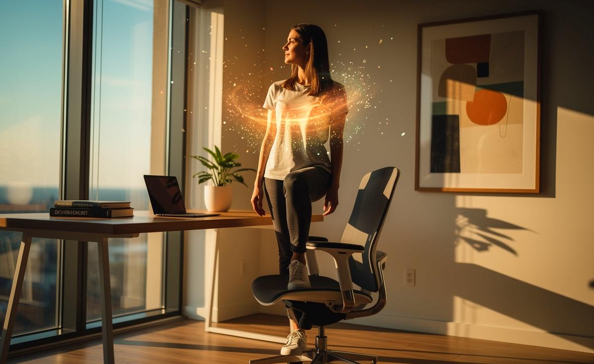- 🧠 Neurowissenschaftlicher Effekt: Das Stehen auf dem Stuhl aktiviert das vestibuläre System und erhöht die kortikale Erregung, was Aufmerksamkeit schärft und routinierte Gedankenmuster unterbricht.