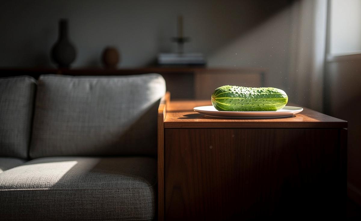 Der Ursprung liegt vermutlich in den ironischen Untiefen des Internets. Ein Nutzer stellt eine Gurke neben sein teures Designer-Sofa, postet das Bild mit einem sarkastischen Kommentar über „Bio-Dekoration“ – und löst eine Lawine aus. Die Absurdität der Geste ist ihr größter Reiz. In einer Welt, die von perfekt kuratierten Instagram-Ästhetiken und teuren Designklassikern dominiert wird, wirkt die Gurke wie eine erfrischende Provokation. Sie ist demokratisch, preiswert und unprätentiös. Plötzlich wird die alltägliche Gemüsefrucht zum Statement gegen den Überkonsum und die Überinszenierung des Heims. Die Bewegung ist getragen von einem spürbaren Überdruss an der ständigen Optimierungspflicht. Die Gurke erfordert kein Styling, sie ist einfach da. Ihre grüne, längliche Form bringt zudem eine unerwartete, organische Skulpturalität in den Raum, die viele an die Linienführung des Mid-Century-Modern-Designs erinnert.